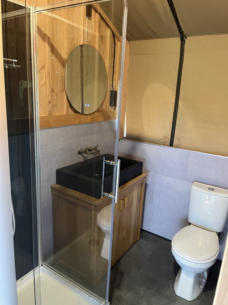 Vanaf april 2026 nieuw in de verhuur. De luxe comfort Safaritent staat aan de Zuid-Oostelijke rand van het bomenrijke erf wat zorgt voor een uniek gevoel van privacy en een prachtig uitzicht. De comfortabele tent is ingericht voor 4 personen en voorzien van een zonnig vlonder, privé sanitair, keukenblok en een kacheltje. Geniet van de zonsopkomst, ga zwemmen in het Hilgelo, stook een vuurtje en ga heerlijk relaxen voor de tent. De kinderen zullen zich eindeloos vermaken op het erf. Er is een schommel, een glijbaan, een grote trampoline. Er zijn skelters en tal van paadjes om op onderzoek uit te gaan.